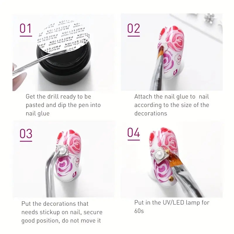 10ml Super Strong Nail Glue: Ideal for Acrylic Nails, Nail Tips, Press On Nails, Gems, and R.hinestones - Perfect for Home Salon Nail Art DIY