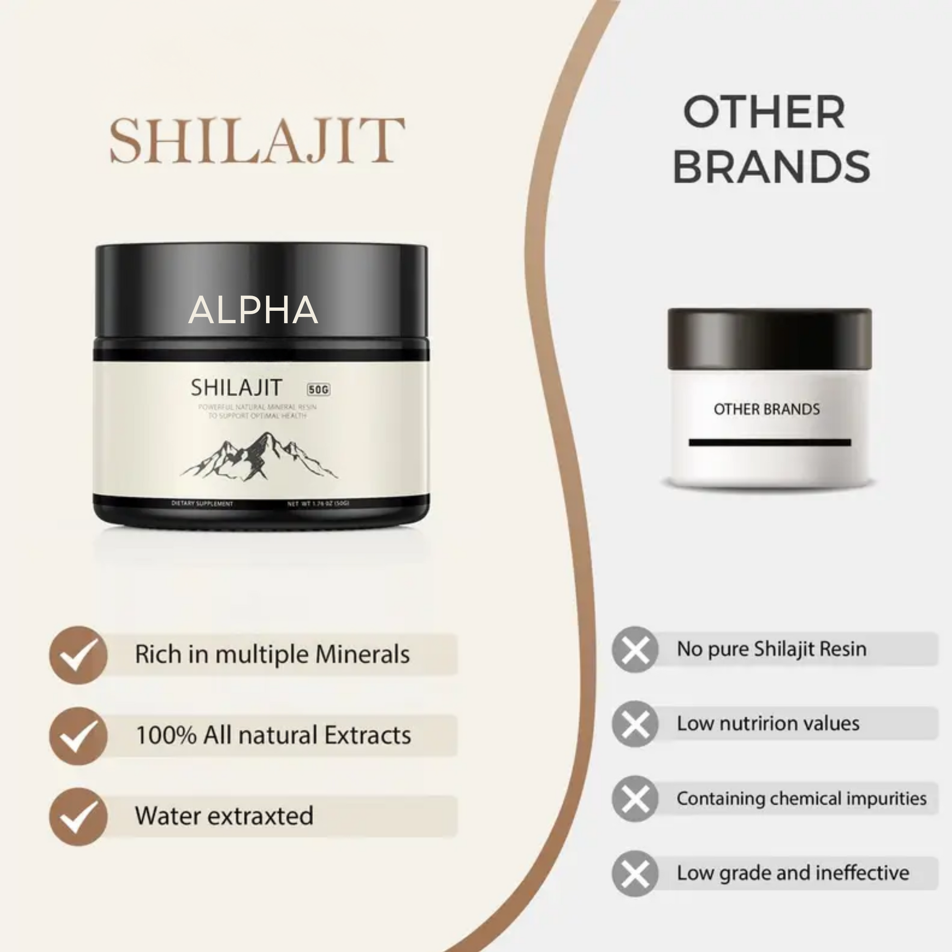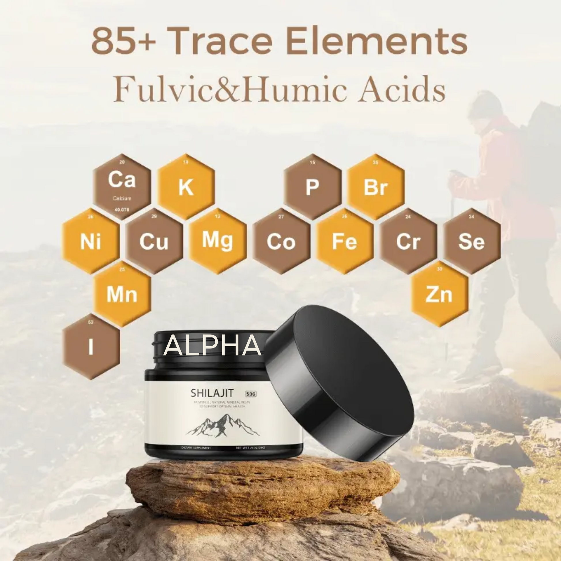 Enhance your overall health with Alpha Shilajit, a powerful natural mineral resin sourced from the Himalayan mountains. Packed with essential minerals and fulvic acid, this 50g jar supports energy, stamina, and vitality. With a convenient 90-day supply and measuring sticks included, it's easy to incorporate into your daily routine. Experience optimal health and natural rejuvenation with this premium Shilajit.