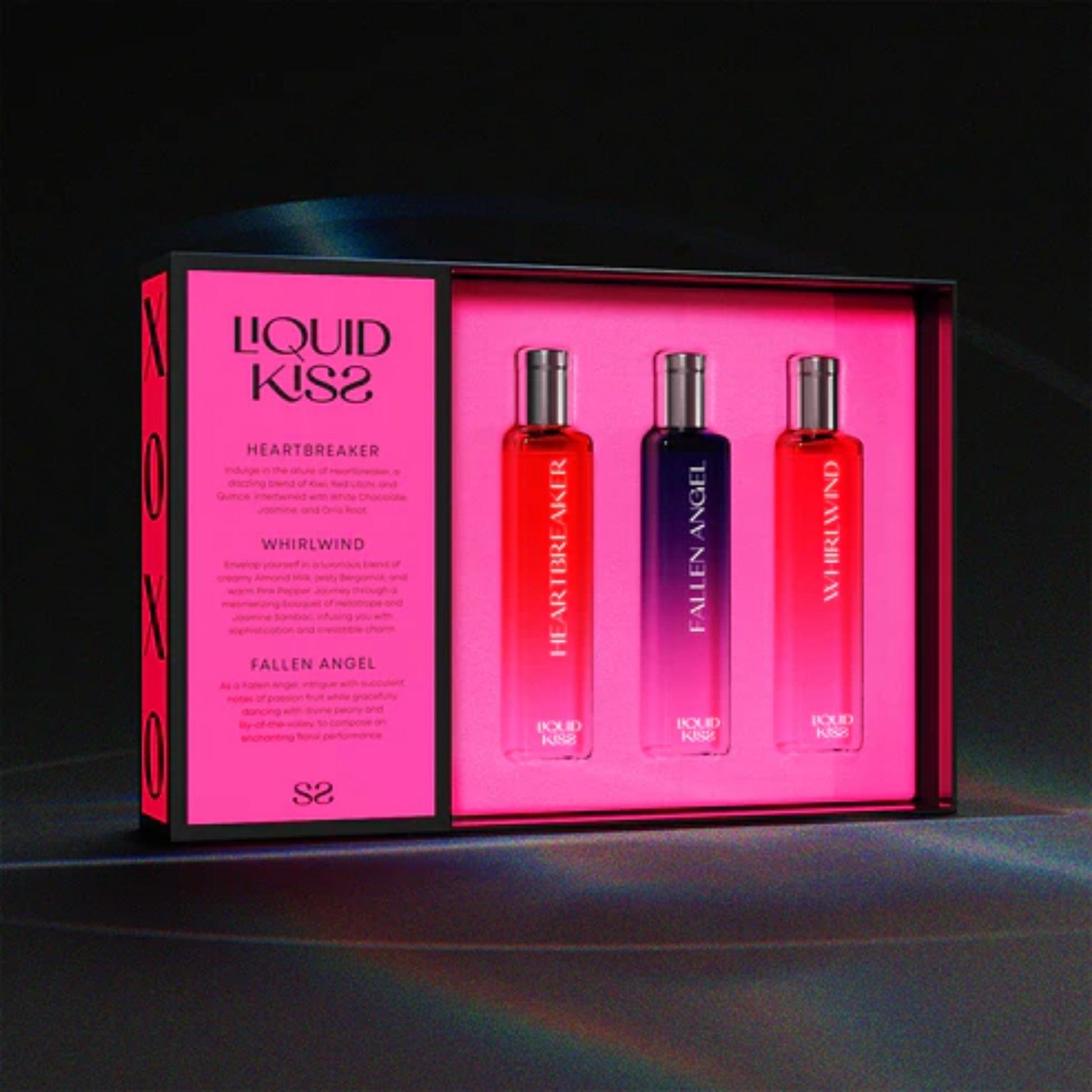 Elevate your scent game with the Liquid Kiss 3-Piece Rollerball Set, featuring three captivating fragrances: