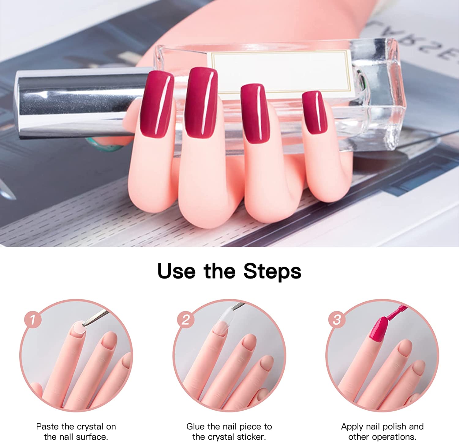 - Flexible fingers, bent to any position as you like, easy to practice technology of nail painting, False nail tips can be inserted into the fingers tightly without or with glue then you can design and paint nail art patterns on nail tips