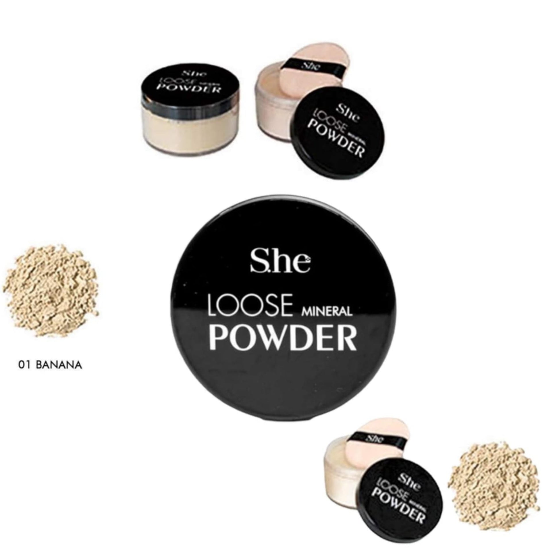 The "S.HE Makeup Loose Mineral Powder, Pack of 2" offers a duo of finely milled powders that cater to setting the makeup and enhancing the skin's appearance. Formulated with natural minerals, these powders work to absorb excess oil, minimize the look of pores, and provide a smooth, matte finish without caking. Each pack contains two containers, making it convenient for both home use and on-the-go touch-ups. The lightweight formula is suitable for all skin types, promoting a healthy, radiant complexion while ensuring your makeup stays in place throughout the day.