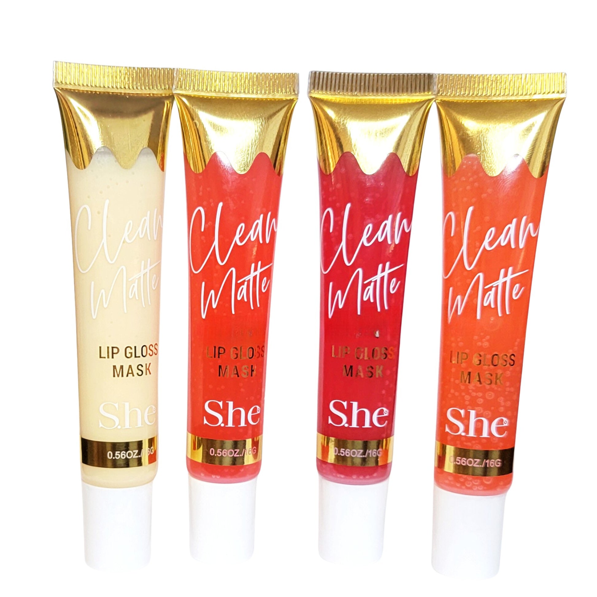S.HE Makeup Lip Gloss Mask Set, 4 Colors per Pack