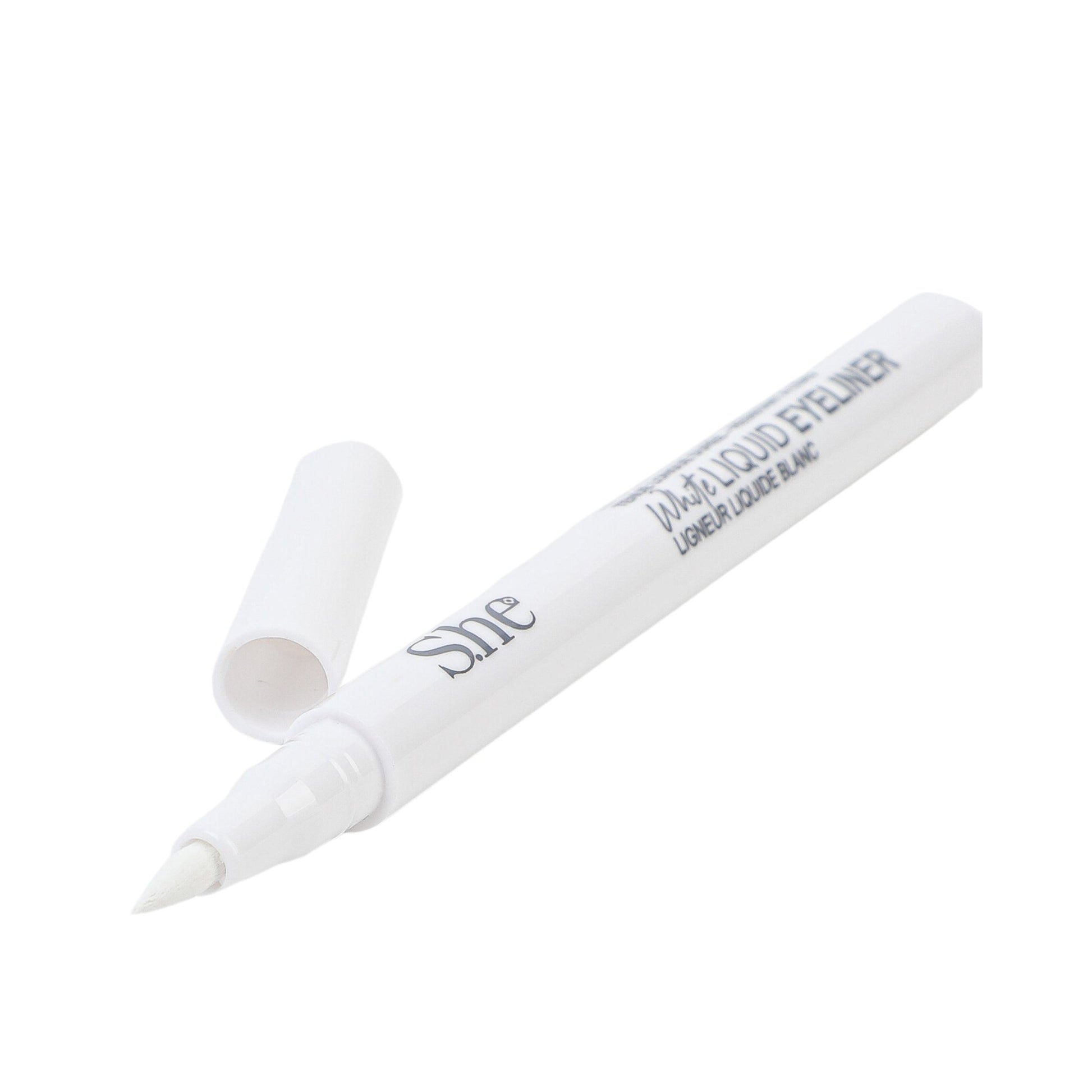 The S.HE Makeup White Liquid Eyeliner delivers crisp, bold lines with its intense white formula. Designed for precision and long-lasting wear, this trio of liquid eyeliners allows for versatile eye makeup looks, from classic to avant-garde. Easy to apply and water-resistant, it's a must-have for creating captivating eye looks.