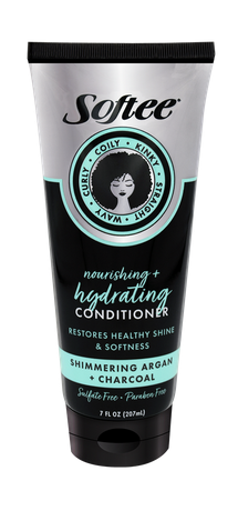 Sulfate Free and Paraben Free, Softee Shimmering Argan + Charcoal Conditioner gently brings life to natural curls with argan nut botanicals, and protects hair strands from breakage. Enforce manageability and protect endlessly on wash day with your new favorite, Shimmering Argan + Charcoal Conditioner by Softee.
